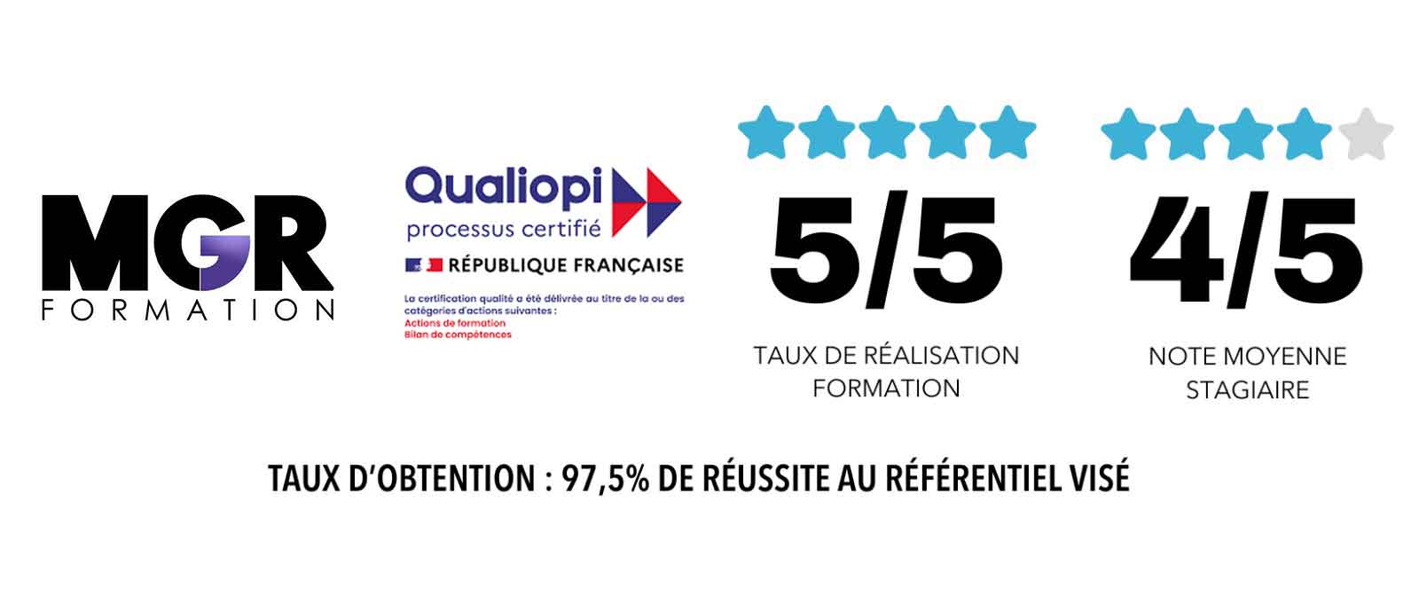 Notre organisme de formations est certifié Qualiopi, gage de la qualité de nos formations et de nos processus internes. Cette certification permet notamment à nos stagiaires d’obtenir des financements pour leurs formations via les OPCO, le CPF ou d’autres organismes financeurs.